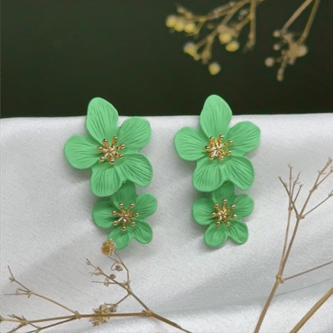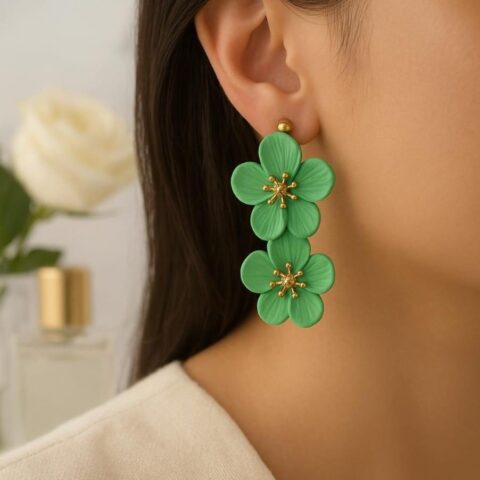 Green Flower Drop Earrings – Timeless Floral Elegance by Rang E Hunar