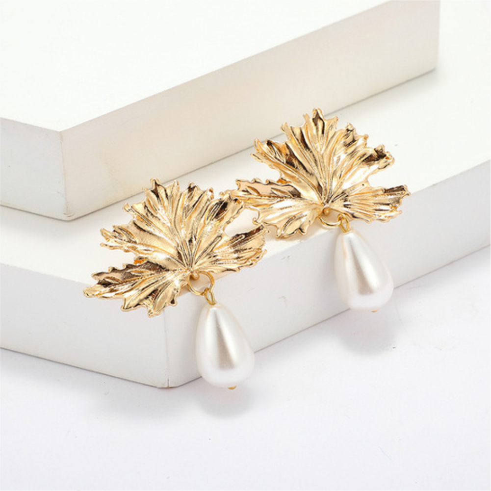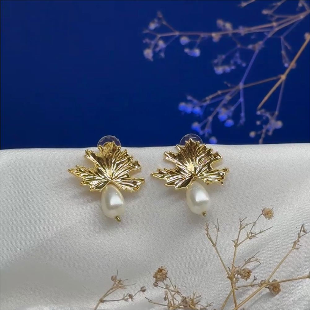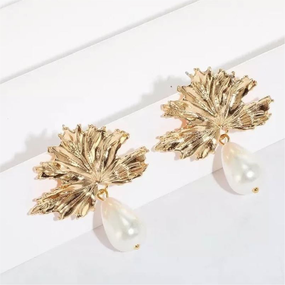 • Chic leaf-inspired design with elegant pearl drops