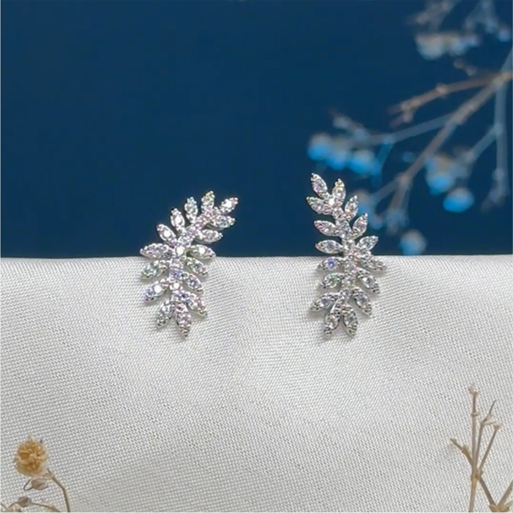 Zirzon Silver Leaf Earrings – Exclusive Design & Limited Article by Rang E Hunar